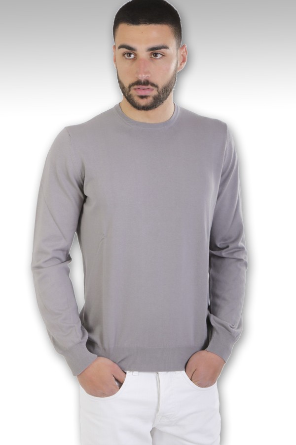 Gran Sasso sweater Art.55167 21801 040 crewneck model made of gray organic cotton. Composition 100% organic. The model wears size 48.