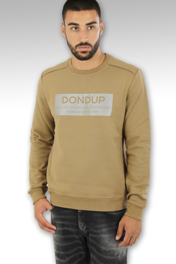 Sweatshirt dondup Art.UF617 KF0136 CA7 028 crewneck model made in camel color, regular long-sleeved fit with logo graphic on the center front. Brushed sweatshirt. Made in Italy