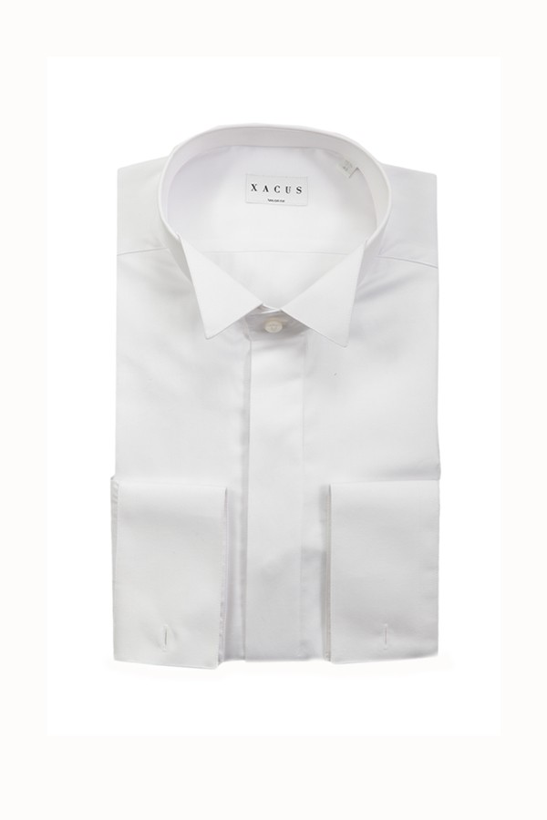 Xacus shirt Art.11231 546 001 made of white cotton, tailor diplomatic model with hidden buttoning. Composition 100%co