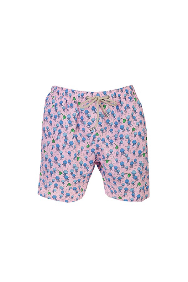Realizzato in tessuto tecnico. Elastico e coulisse, fantasia. Con tasche oblique, e tasca a filetto, posteriore, con bottone.
