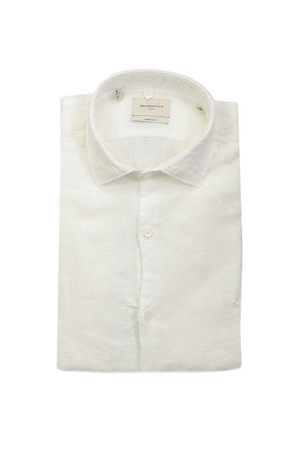 Camicia Brooksfield Art.202AS034 9149 realizzata in lino colore bianco, modello manica lunga, logo ricamato sul petto. Composizione 100%li.