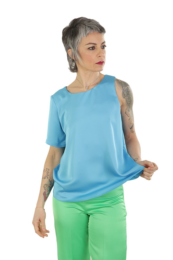 -50% Remove from Wishlist Wishlist MOMONI' Top Momonì Hevea in Crepe de Chine Acquamarina €187.70 -50% €93.85