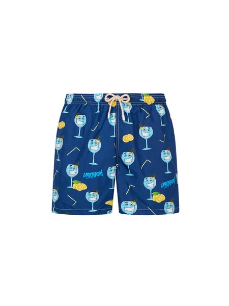 Made of technical fabric. Elastic and drawstring, pattern. With slanted pockets, and back welt pocket with button.