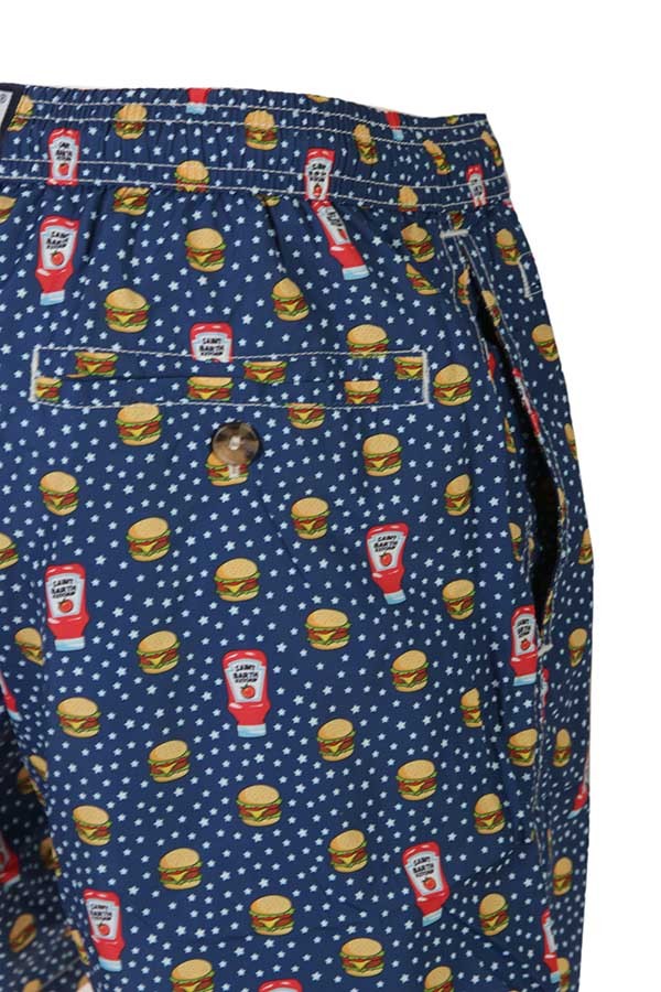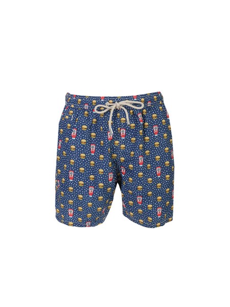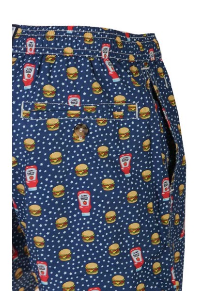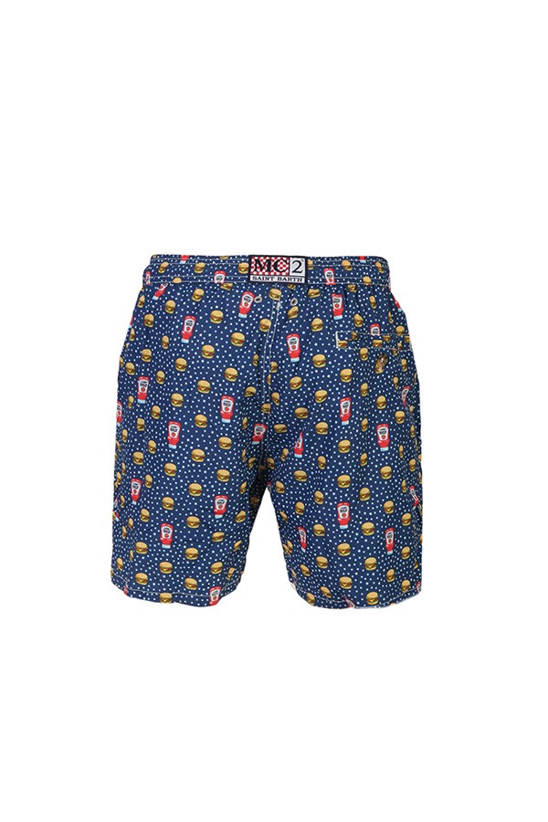 Made of technical fabric. Elastic and drawstring, pattern. With slanted pockets, and back welt pocket with button.