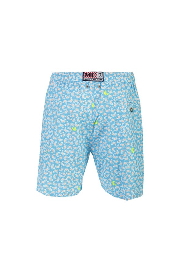 Made of technical fabric. Elastic and drawstring, pattern. With slanted pockets, and back welt pocket with button.