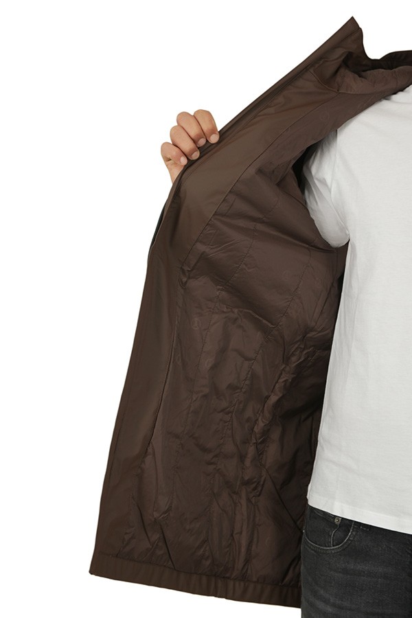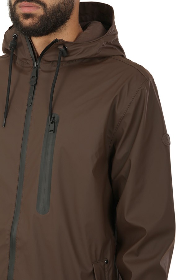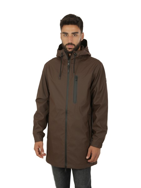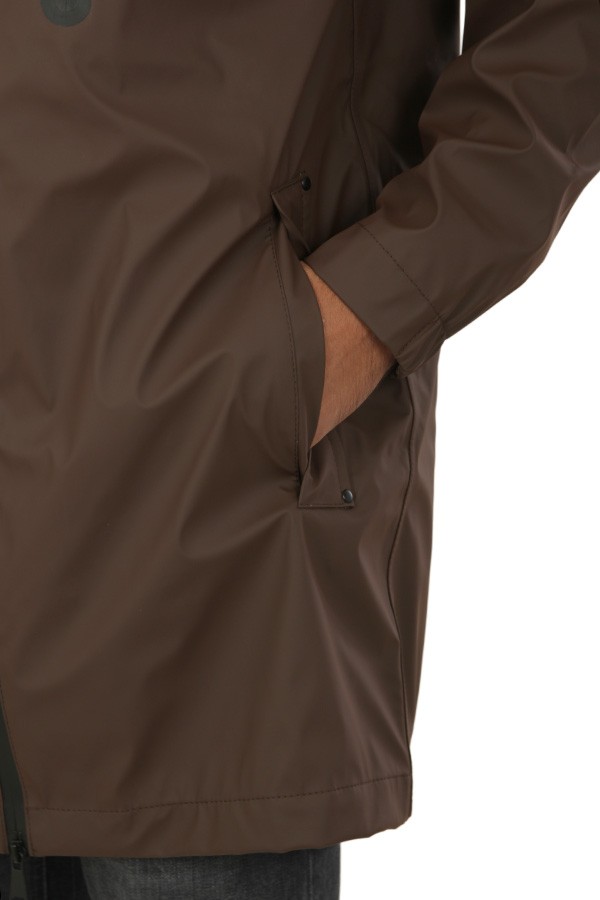 Raincoat TANTA RAINWEAR Java Rainwear Brown Art. T3177 JV Made of waterproof and quilted polyurethane with a lightweight, breathable and down-free layer of insulation, it features a chest pocket and a sealed front zipper closure.