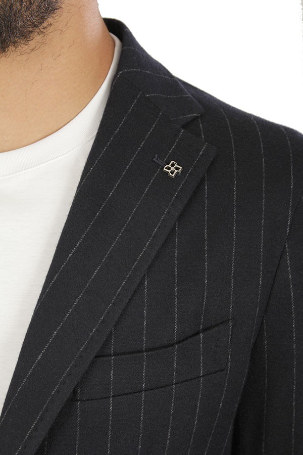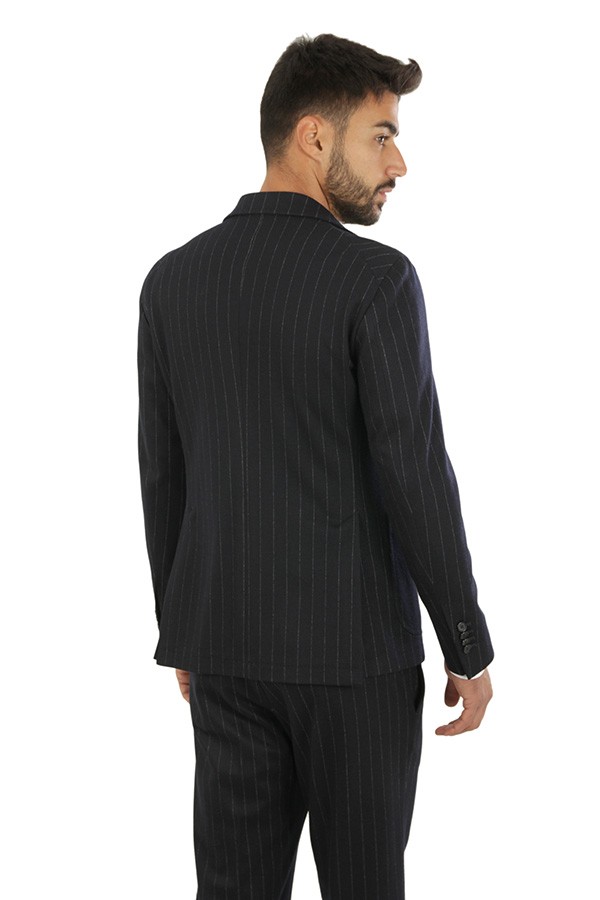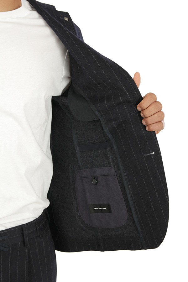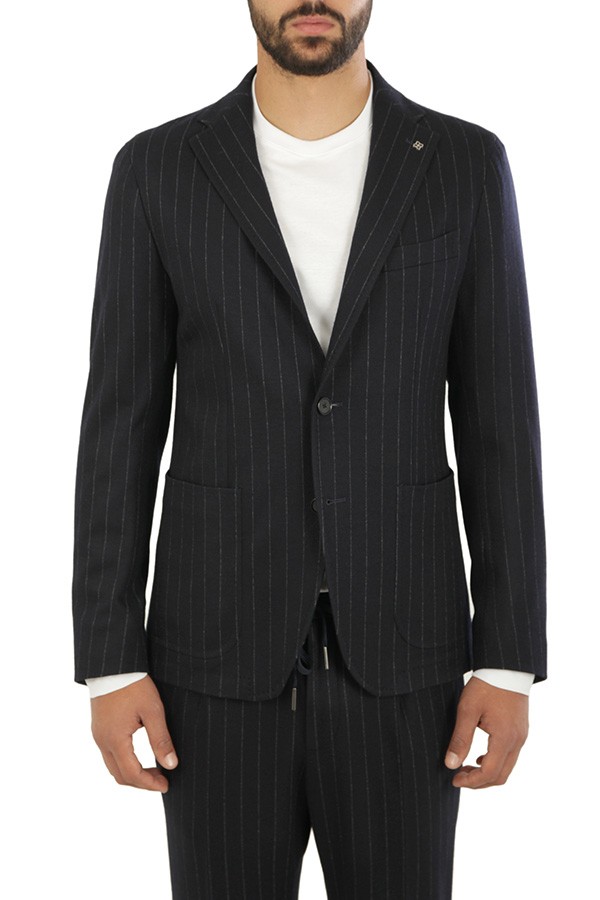 Dress TAGLIATORE Art.DAKAR22K14/JAI570042 22I333 made of black wool blend with unlined deconstructed jacket, two patch pockets and one boat pocket, one pleat trousers. Composition 80% wool 20% cotton. The model wears size 48.
