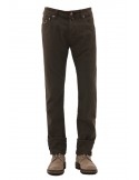 Brown 5-pocket jeans, composition 98% cotton 2% stretch, made in Italy. The model wears size 48.