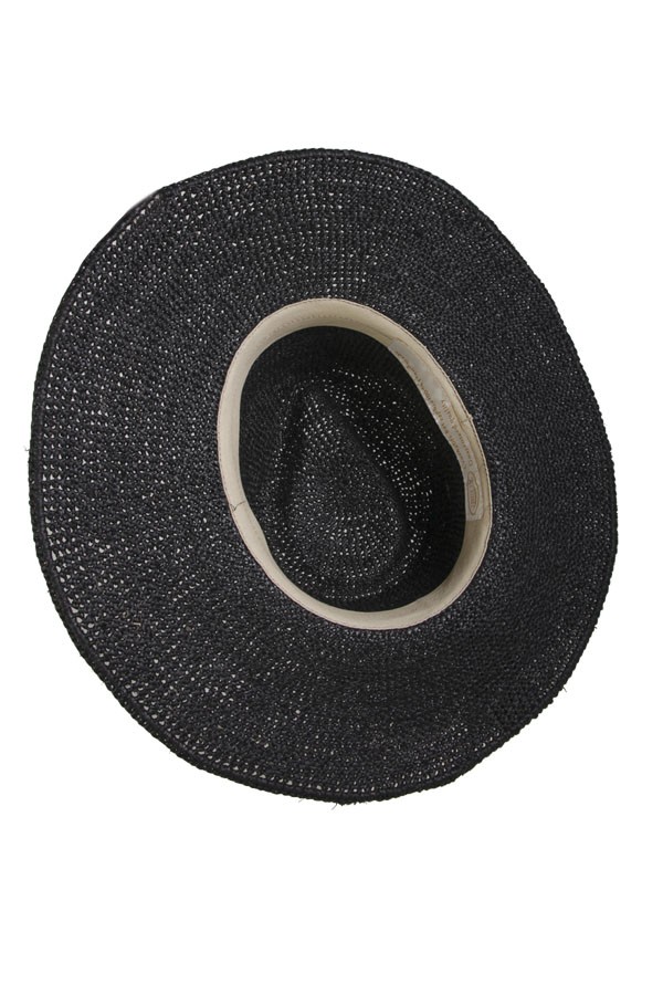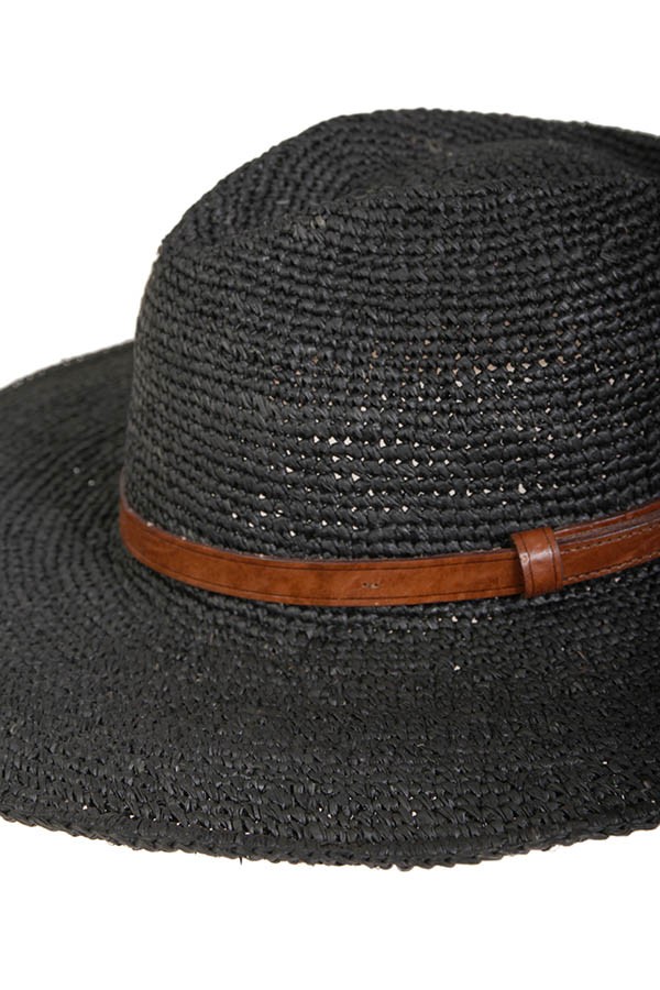 Ibelive Art.FALY BLACK hat made of black raffia, model with wide brim and leather strap.