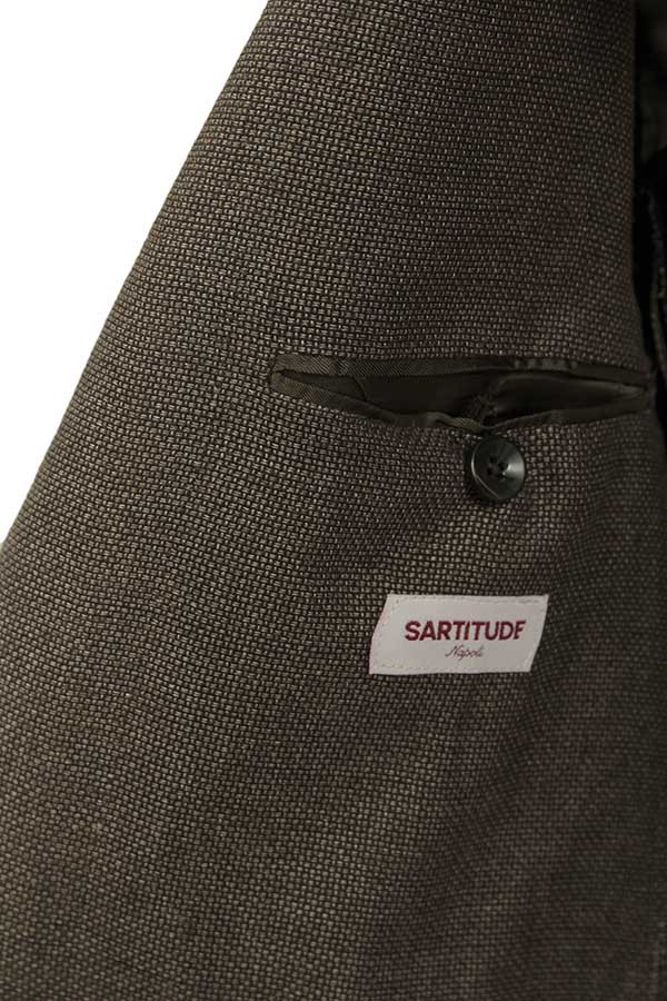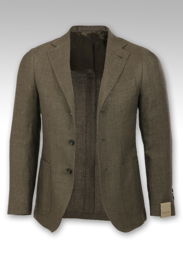 Sartitude jacket Art.2PU9TNETXFUZUE 40 made of dark brown linen blend, single-breasted hopsac model, with patch pockets, breast pocket. Composition 60% 40% la.