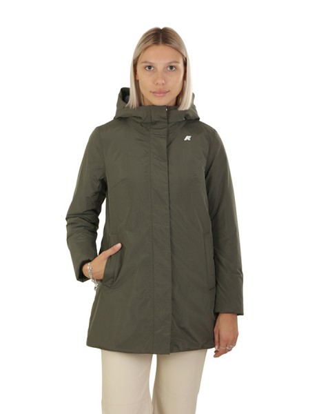 Made of stretch nylon, water-repellent, waterproof, windproof and breathable. Double. Heat-taped seams. Adjustable hood. Zip closure. Cuffs with elastic. Silicone logo.