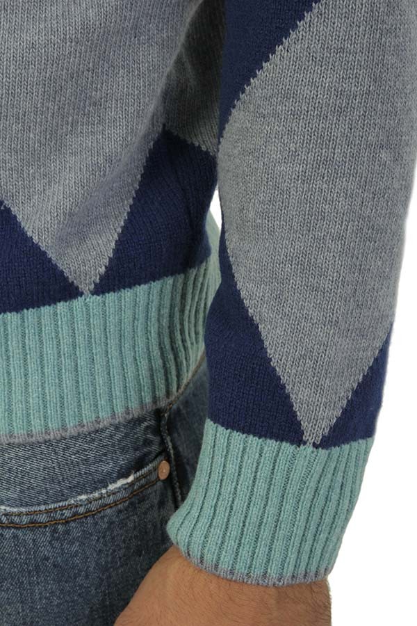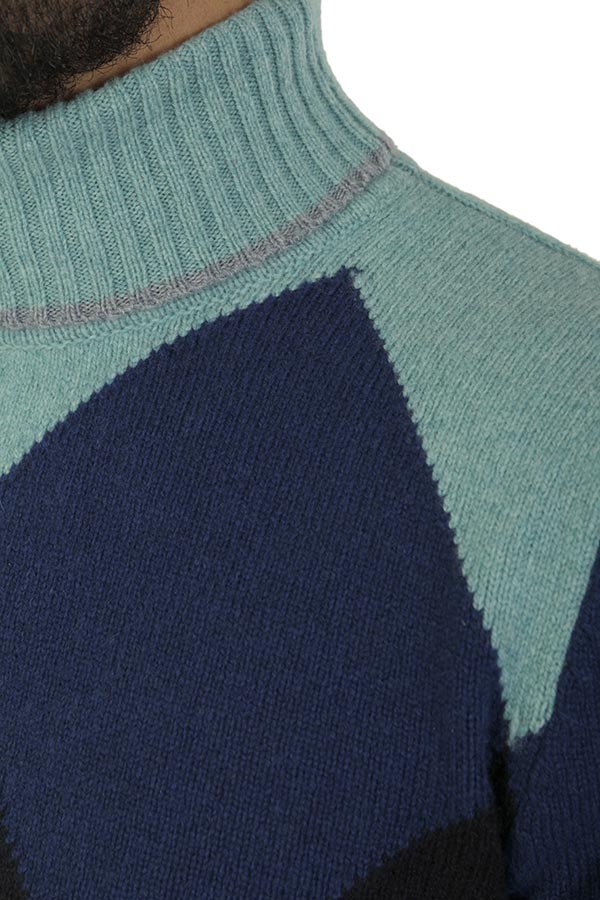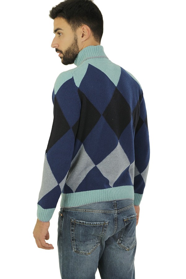 H9/53 sweater Art.HS3061 72 made of avion wool with diamond pattern, turtleneck model. Composition 100%laThe model wears size L.