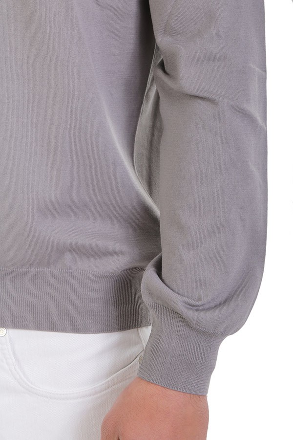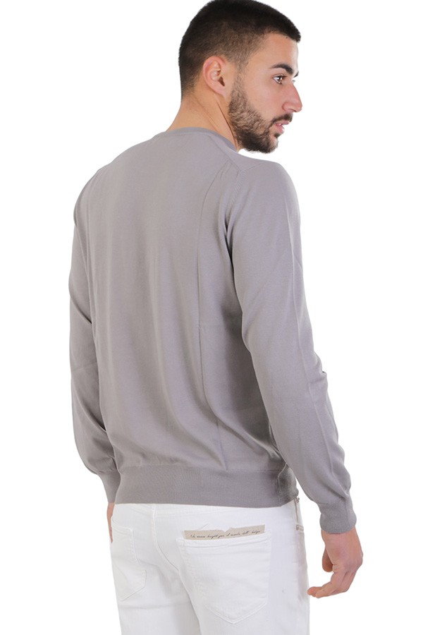 Gran Sasso sweater Art.55167 21801 040 crewneck model made of gray organic cotton. Composition 100% organic. The model wears size 48.