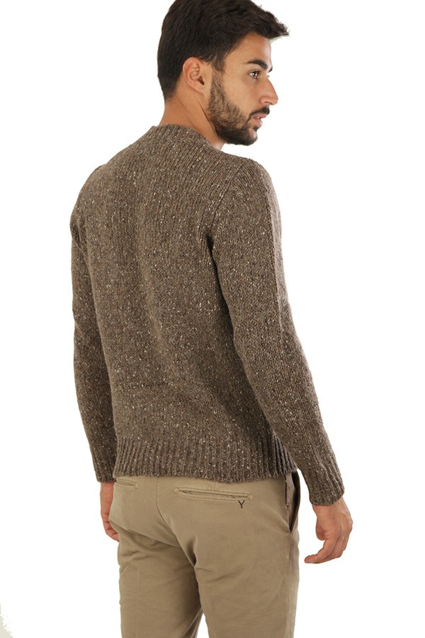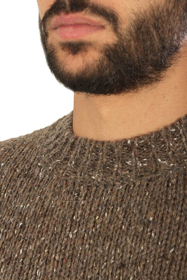 Bellwood sweater Art.322B0001 24 made of dark brown wool mélange, crewneck model. The model wears size 48.
