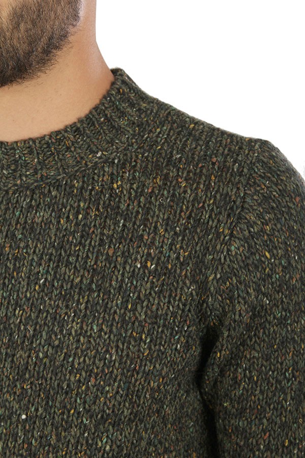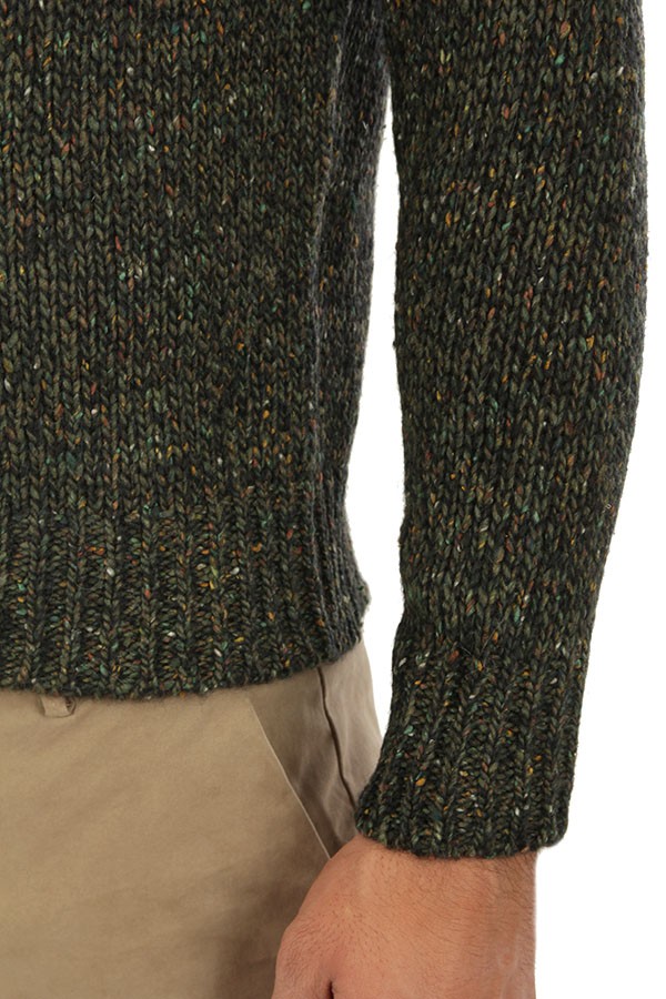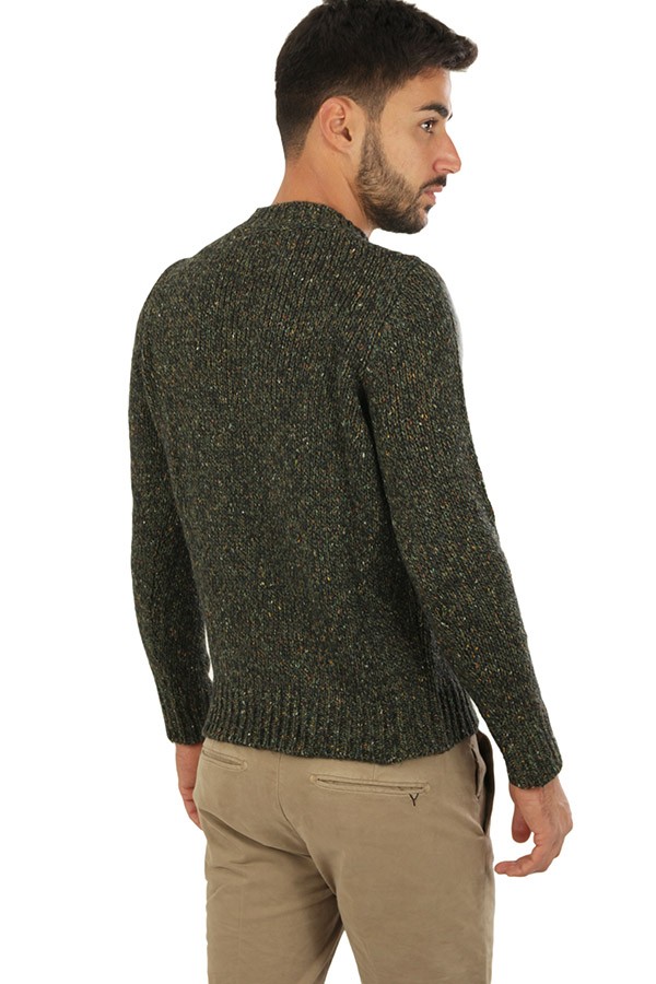 Bellwood sweater Art.322B0001 19 made of green wool mélange, crewneck model. The model wears size 48.