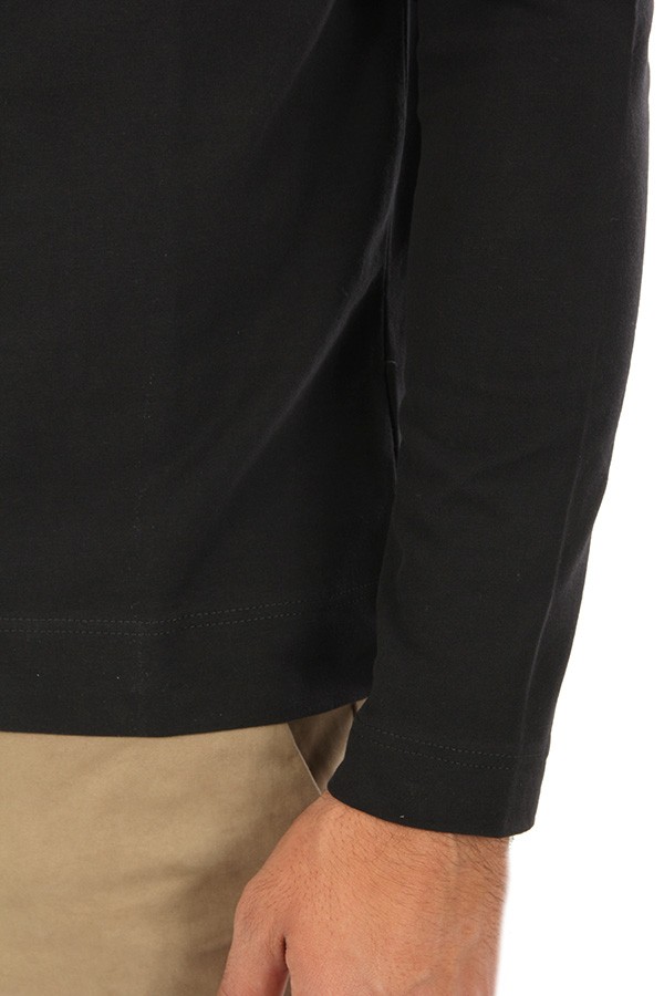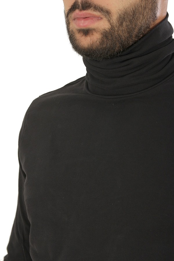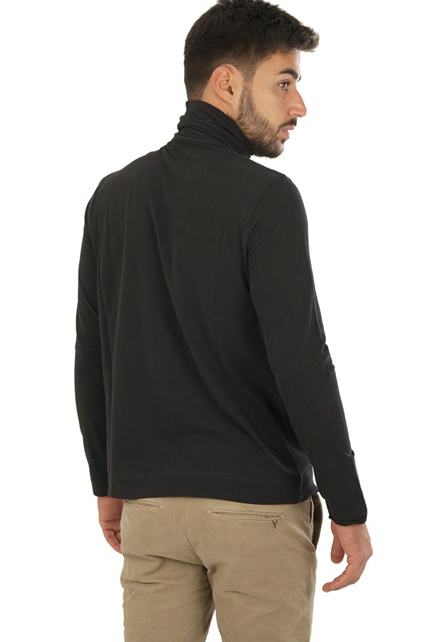 Circolo sweater Art.CN3606 BLACK made of black cotton jersey blend, turtleneck model. The model wears size L. Composition 92%co 8%elasticiz.