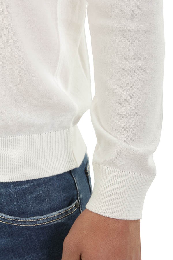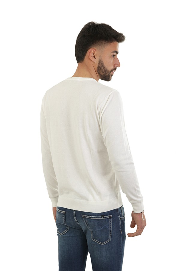 Bellwood sweater Art.0313C1001 21 made of milk cotton, long sleeve crew neck model. Composition 100%co. The model wears size 48.