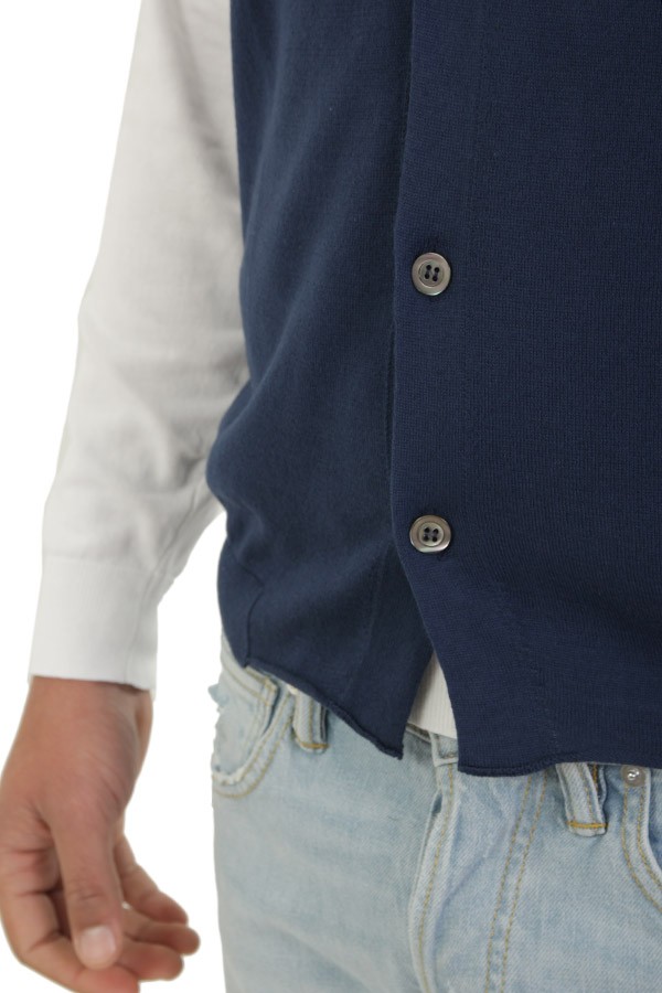 Sweater BELLWOOD Art.0313C1108 029 made of light blue cotton, vest model with buttons. The model wears size 48.