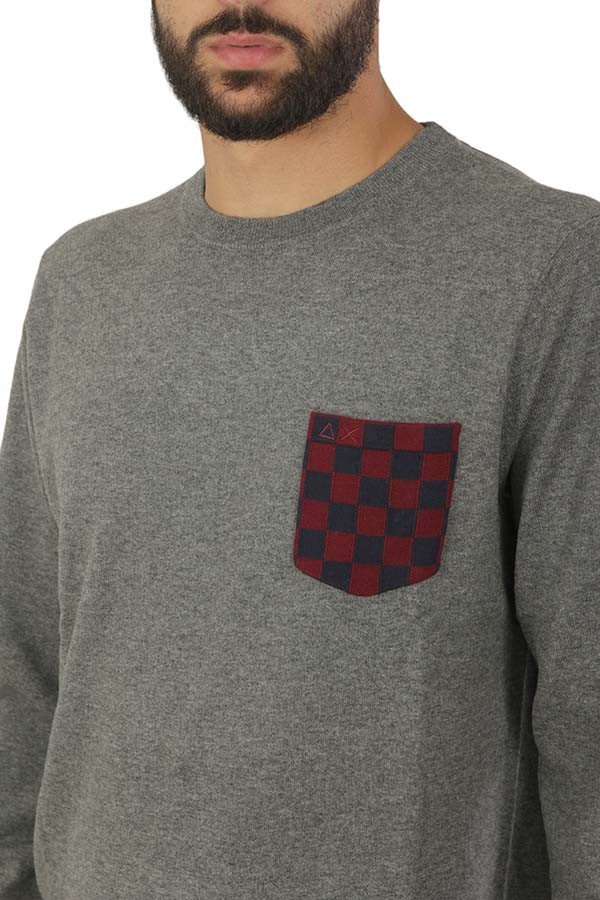 Elbow & Pocket Jacquard Crew SUN68 Sweater Art. K43114 34 Medium Grey