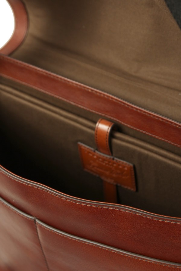 Made of fine Italian leather. Of the Damiano line. It has an adjustable fabric shoulder strap, internal multi-pockets and laptop holder. Flap closure and front zip pocket.