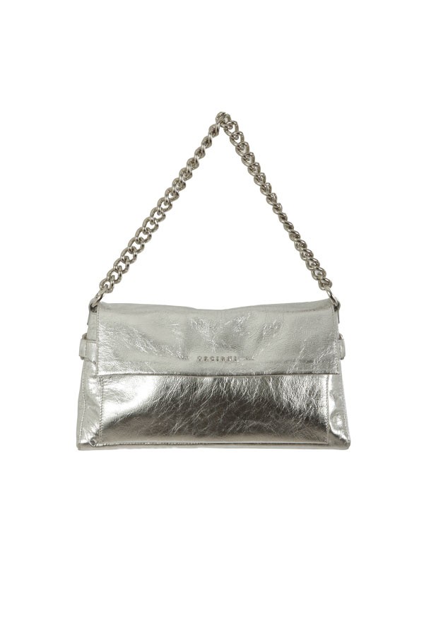 Made of nappa leather, internal pocket with zip. Magnet closure. Particular handle.
