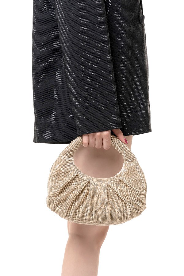 Made of knitted, gathered and rhinestones.
