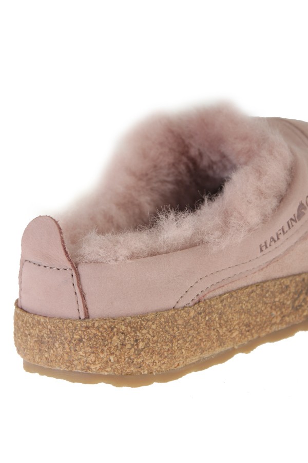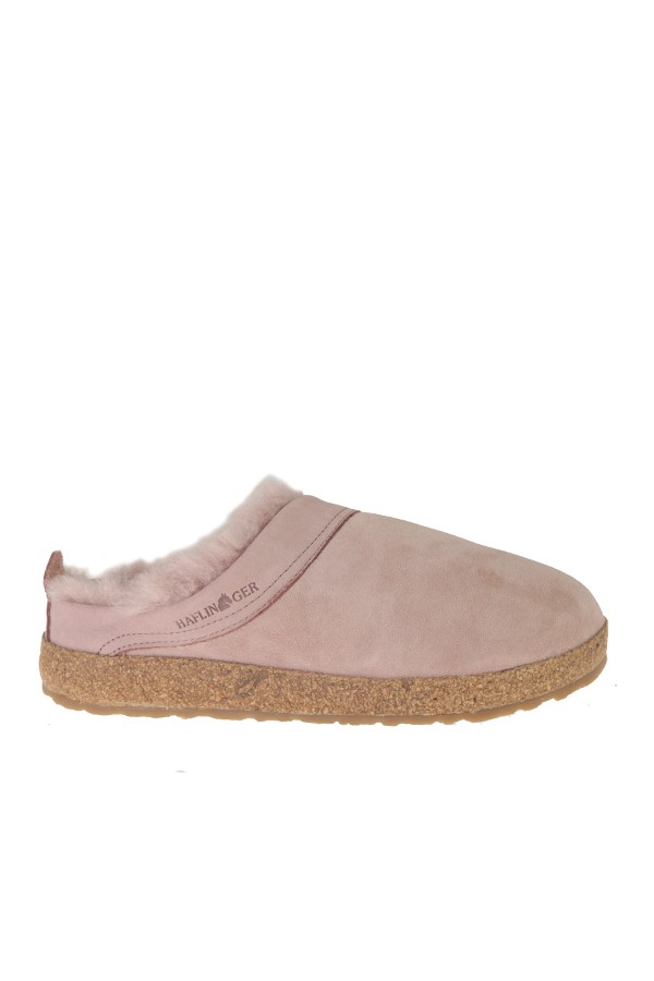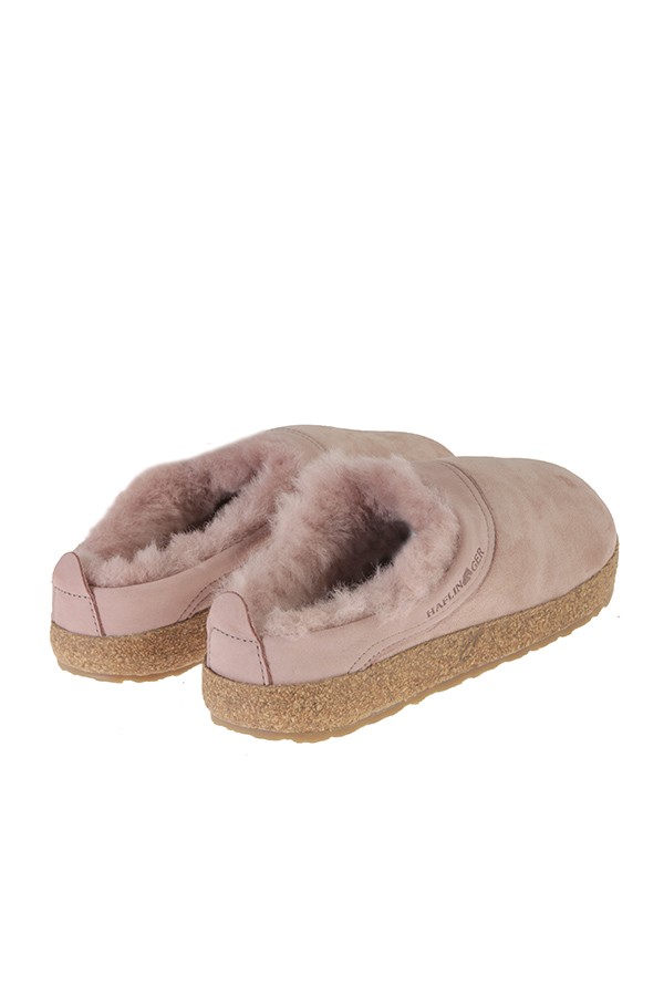 HAFLINGER slipper Art. 71301583 PINK, suede upper, sheepskin lining, anatomical cork and latex footbed, non-slip thermorubber sole.