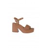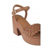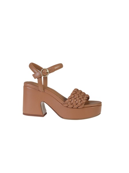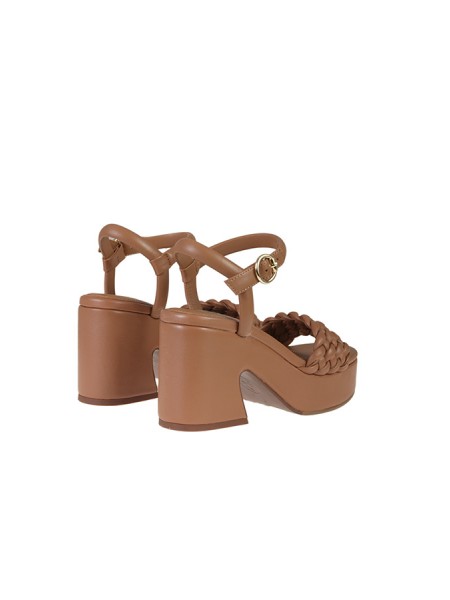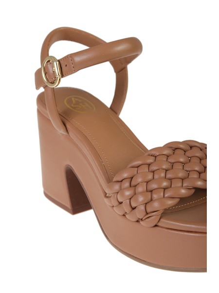 Made of nappa leather. With wide intertwined band. Platform 4cm, heel 9cm. Ankle strap, Leather inner upper.