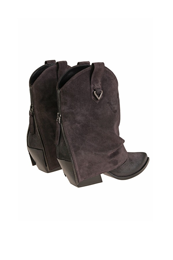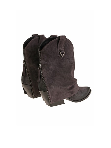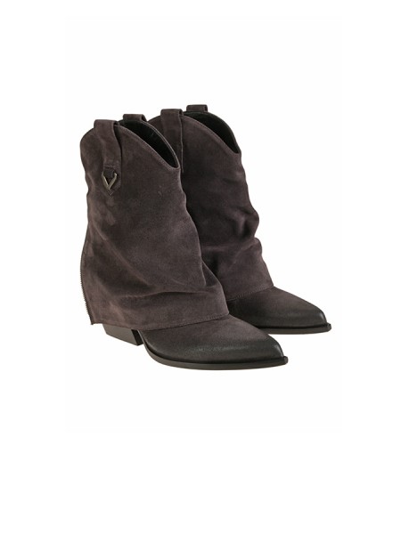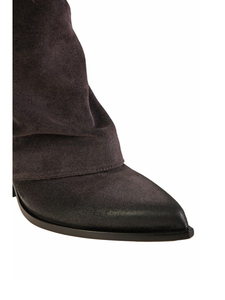 Made of suede, with inverted shaft. Leather sole. Heel 7cm.