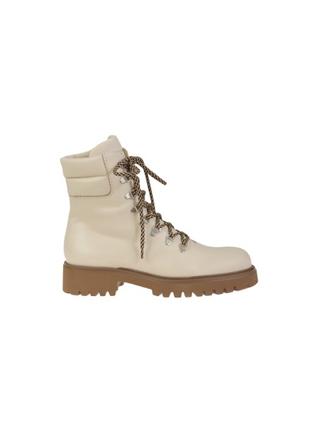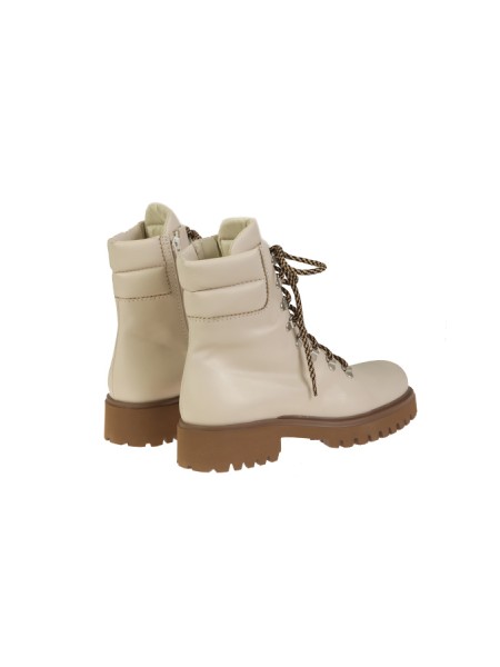 Calzature anfibio in pelle 8fori presenta una cerniera laterale suola in gomma marrone