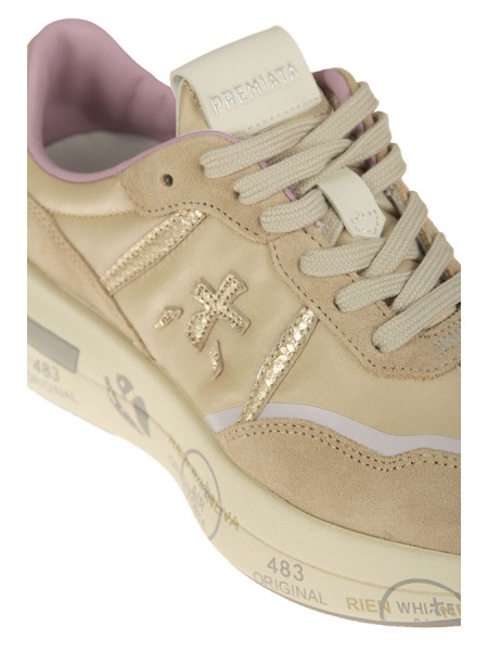 Calzature sneaker realizzata in pelle e camoscio con inserti in pelle suola gomma