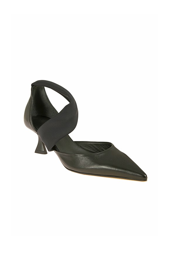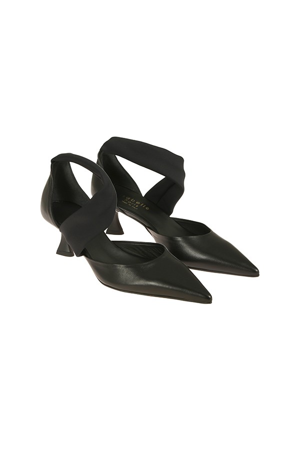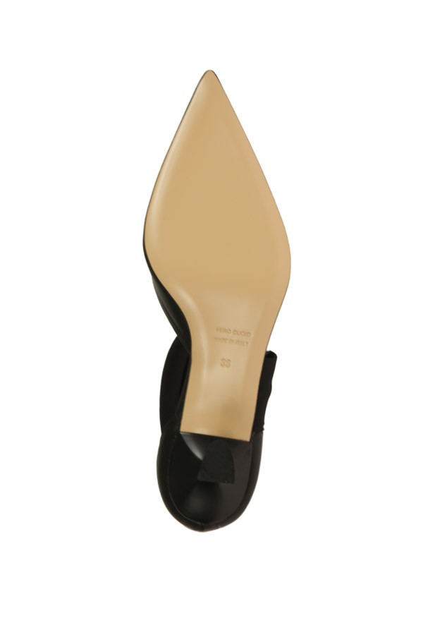 Calzature decollete in nappa tacco 5cm fondo cuoio presenta fascia in tessuto prodotto made in italy