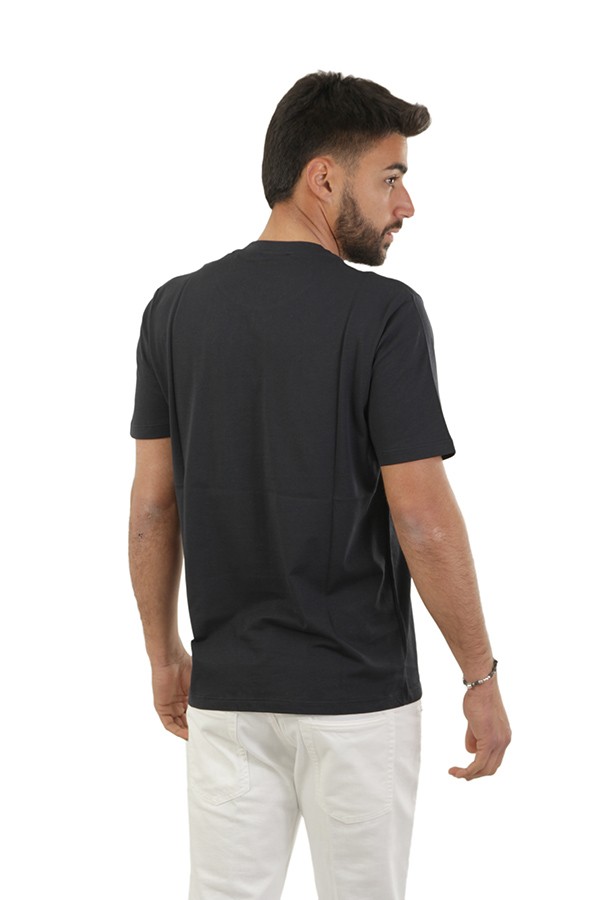 T-Shirt BELLWOOD Art.0313J2101 015 made of dark blue cotton, half sleeve model, crew neck. The model wears size 48.