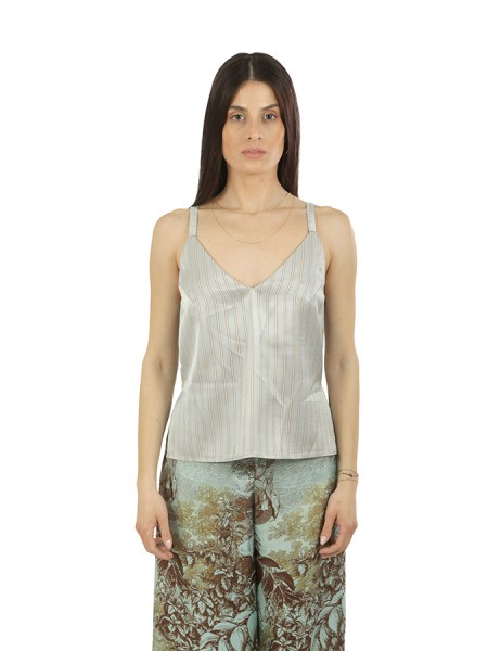Made of silk, printed on the front. Crew neck, sleeveless.