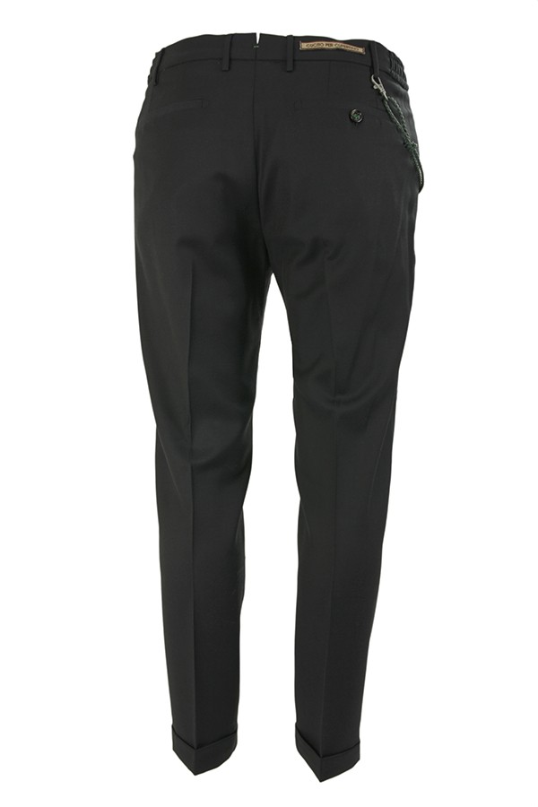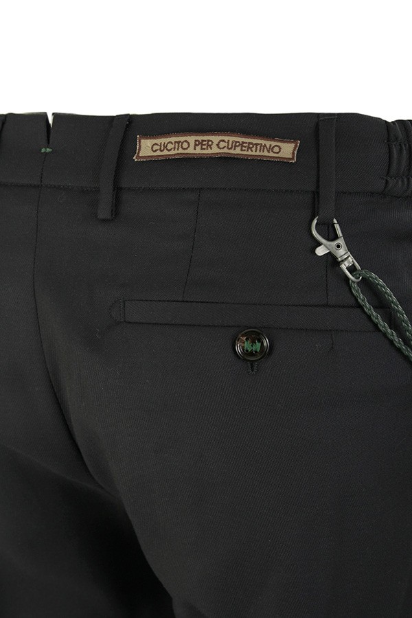 Berwich trousers Art.RETRO RD1735 BLUE made of navy blue wool, model with one pleat, side elastic insert at the waist, side welt pockets, turn-up on the bottom. Composition 100%wv.