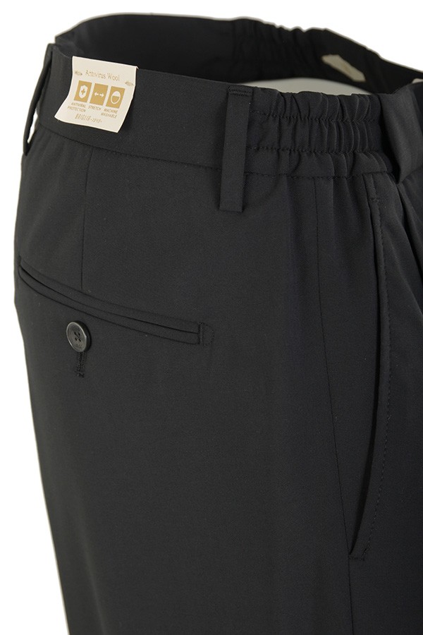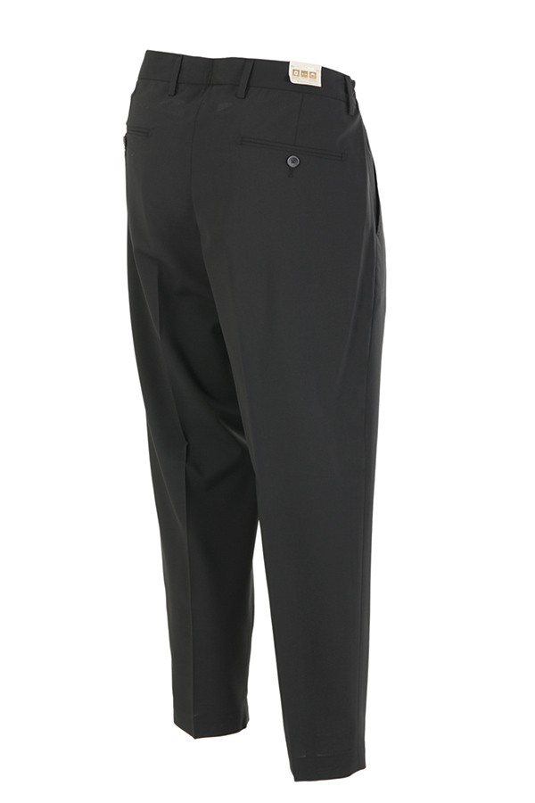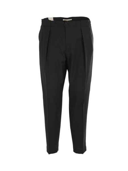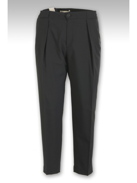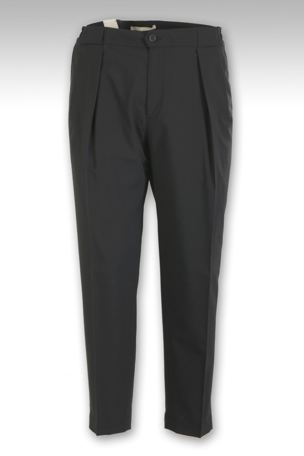 Trousers BRIGLIA Art.PORTOBELLOS 322082 00010 made of black wool blend, with pleats, welt pocket, half elastic and small drawstring at the waist. Composition 54%la 45%pl 01%ea.