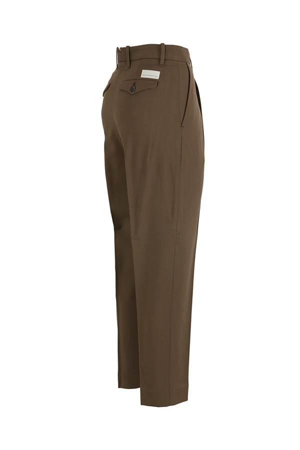 Slim high waist. With front slant pockets, with flap and back button. Zip and button closure.