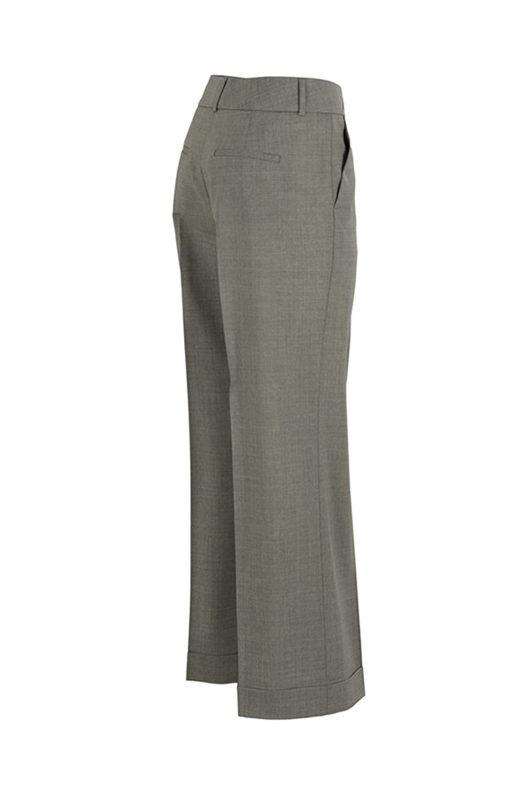 High-waisted, in tela of fresh bi-stretch wool. American pockets on the front, and welt pockets on the back.