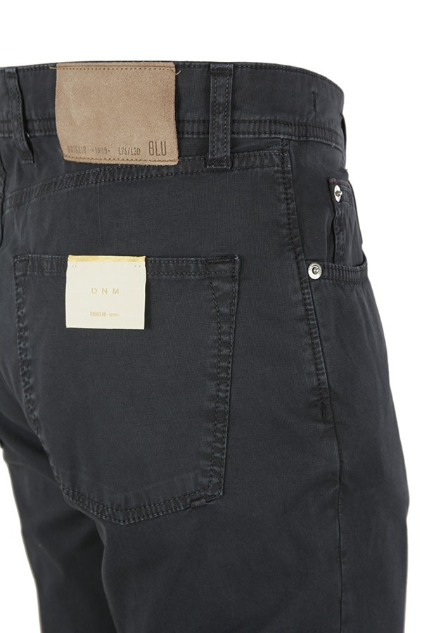 Five-pocket model in cotton blend, blue color. Zip and button closure.