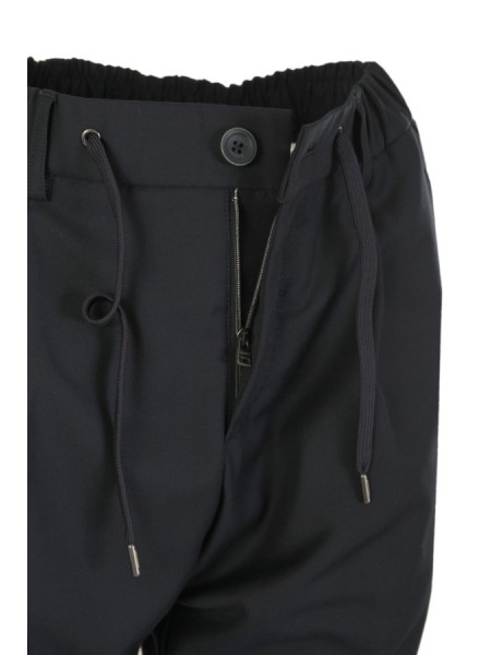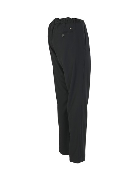 Made of technical fabric, with a regular fit. With elastic, drawstring and pleats. Concealed button and zip closure. Side pockets, buttoned welt pockets on the back.