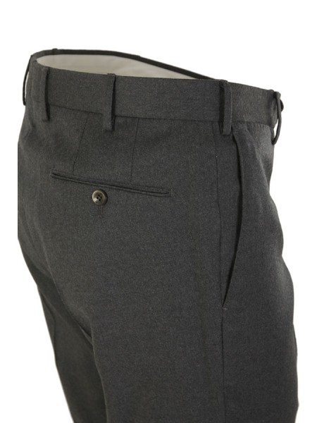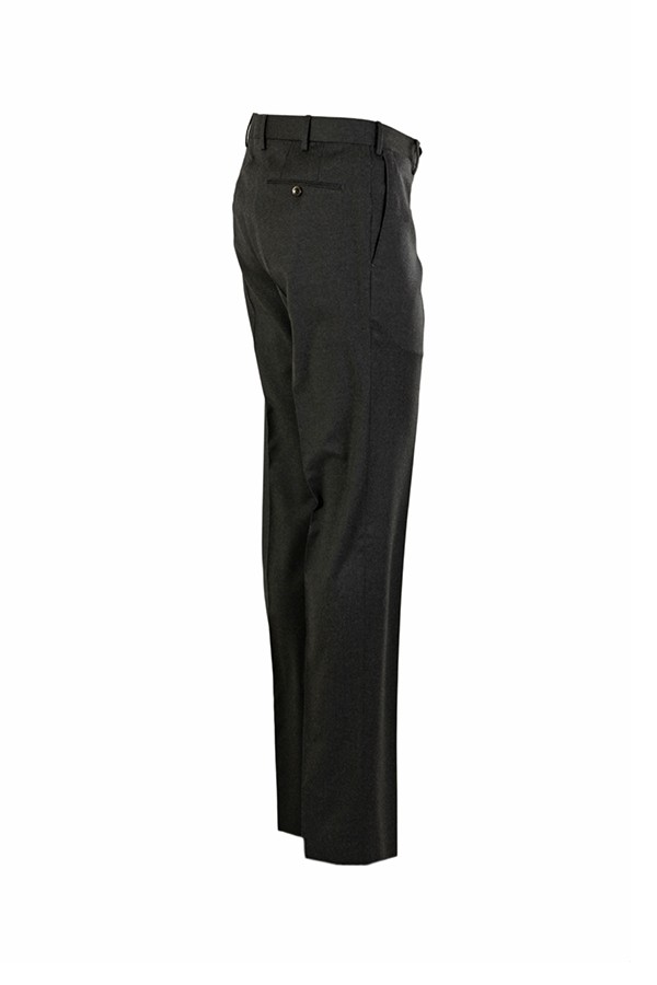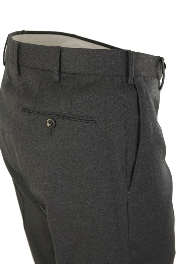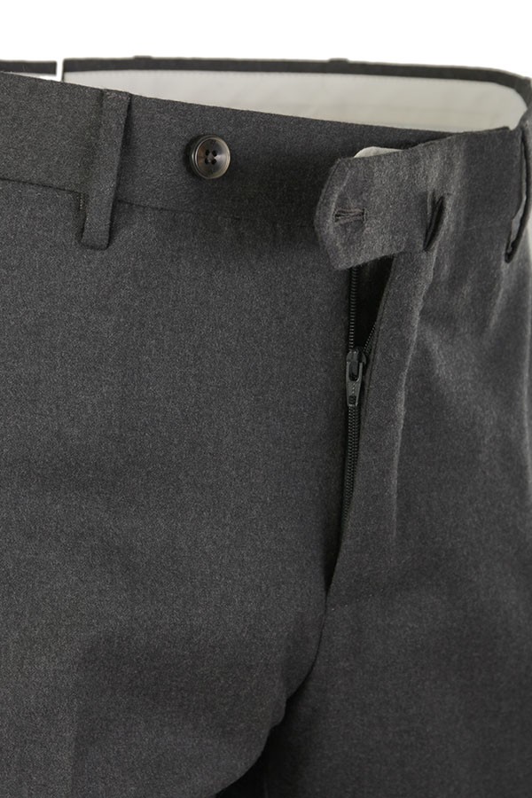 Made of soft wool, with a slim fit. Zip, button and waistband closure. Front French pockets, and back welt pockets with buttons.