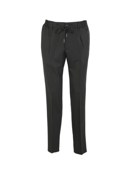Made of wool, with elastic and drawstring at the waist. Back welt pockets. Front welt pleats and pockets.