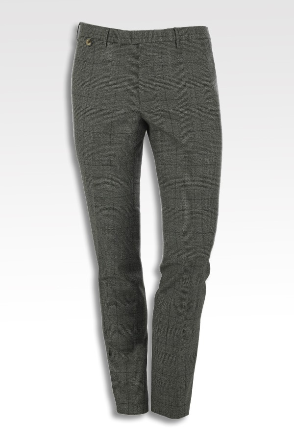 Pantalone con pences e tasche america. Chiusura con zip e bottone. Tasche sul retro a filetto con bottoni.
