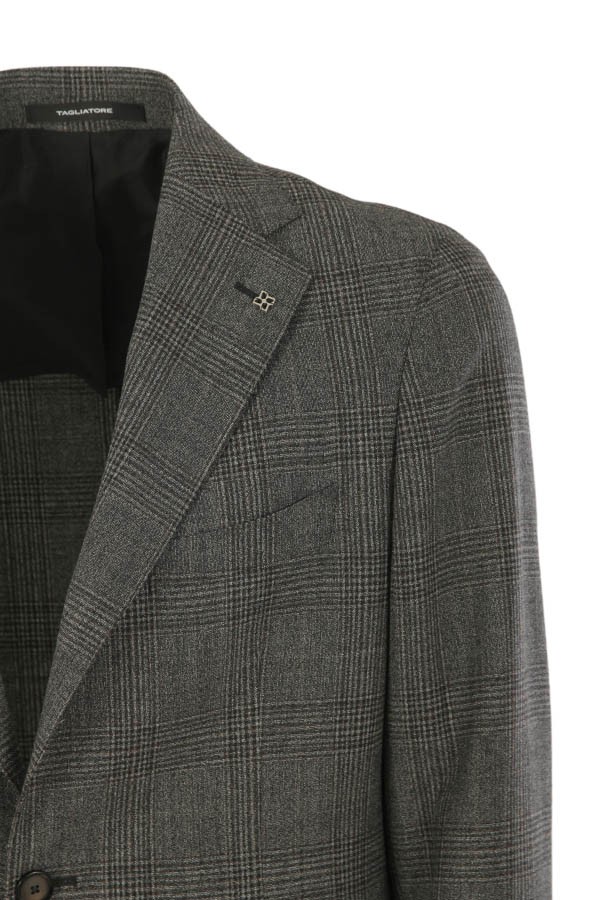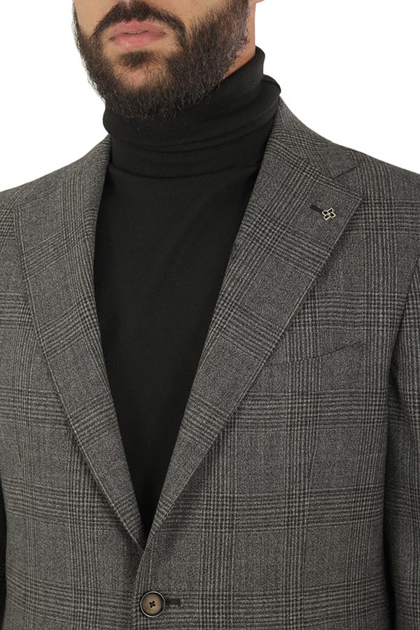 Giacca in lana, in principe di galles. Drop 7, in velluto semifoderato. Due bottoni con patta e taschino.