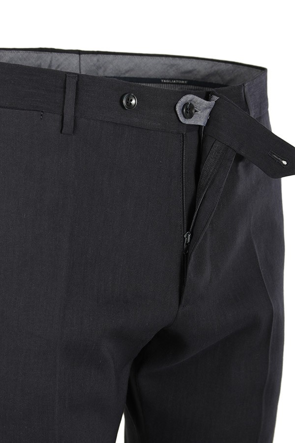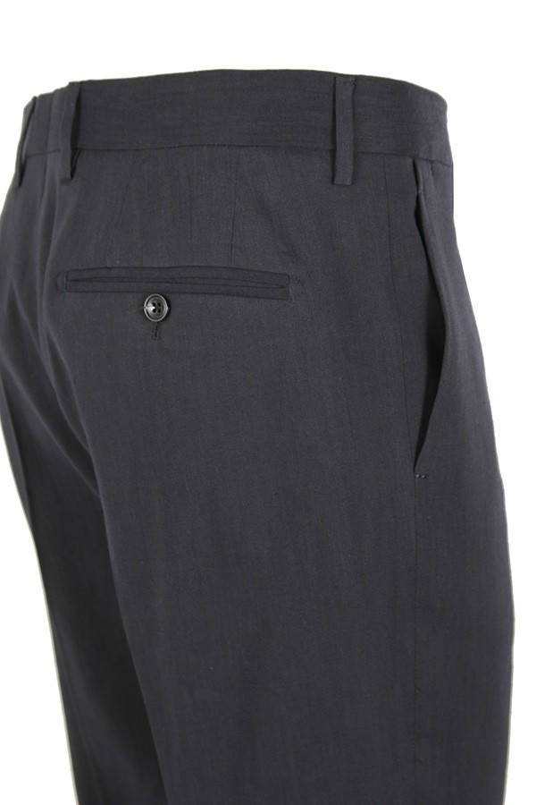 Pantalone con tasche america e tasche posteriori a filetto con bottone.