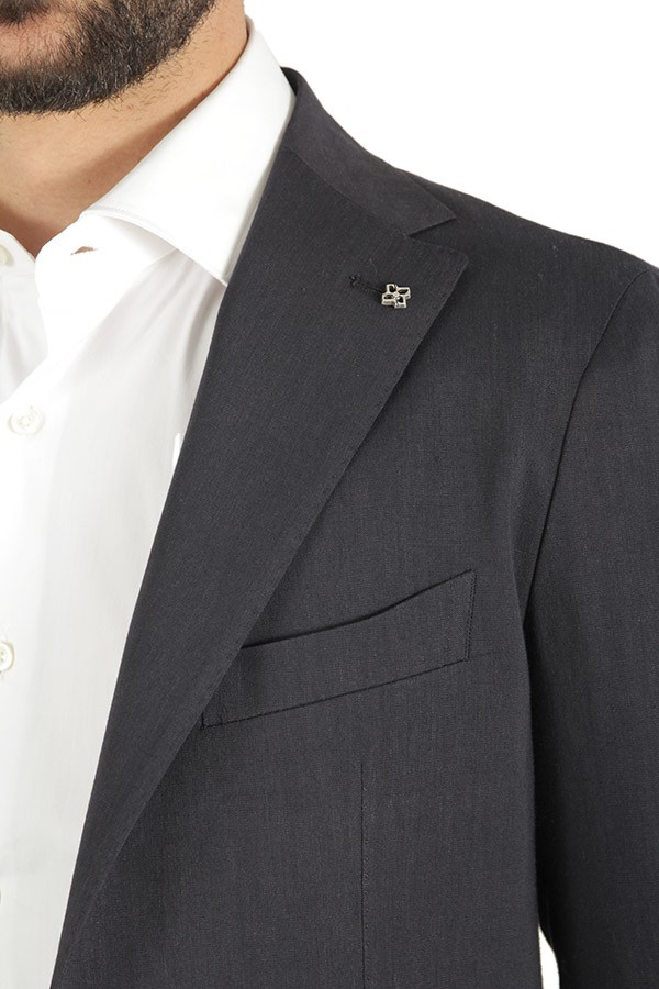 Monopetto a due bottoni, con tasche toppa e taschino.
