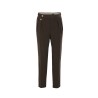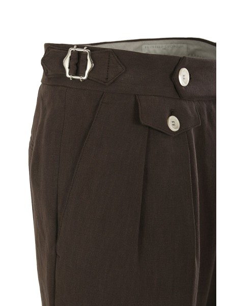 Pantalone con doppia pince, e fibbiette regolabili sul fianco.