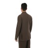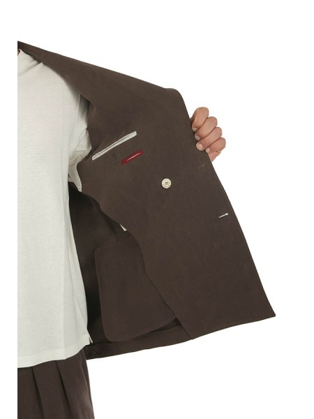 Giacca doppiopetto, con collo a lancia. Tasche con patta e taschini a filetto.