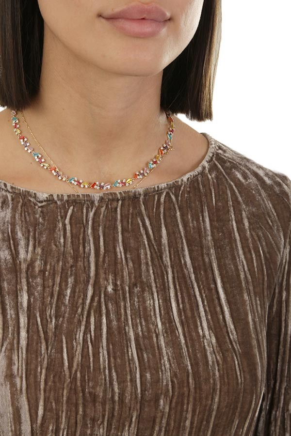 Realizzata in velluto plissettato. Con scollo barca.