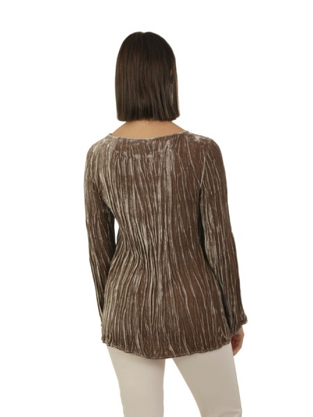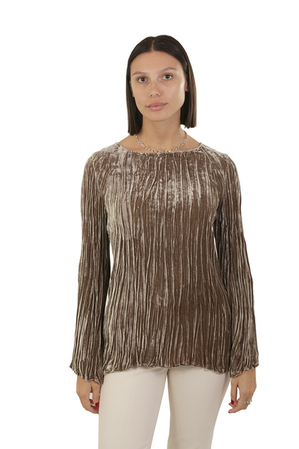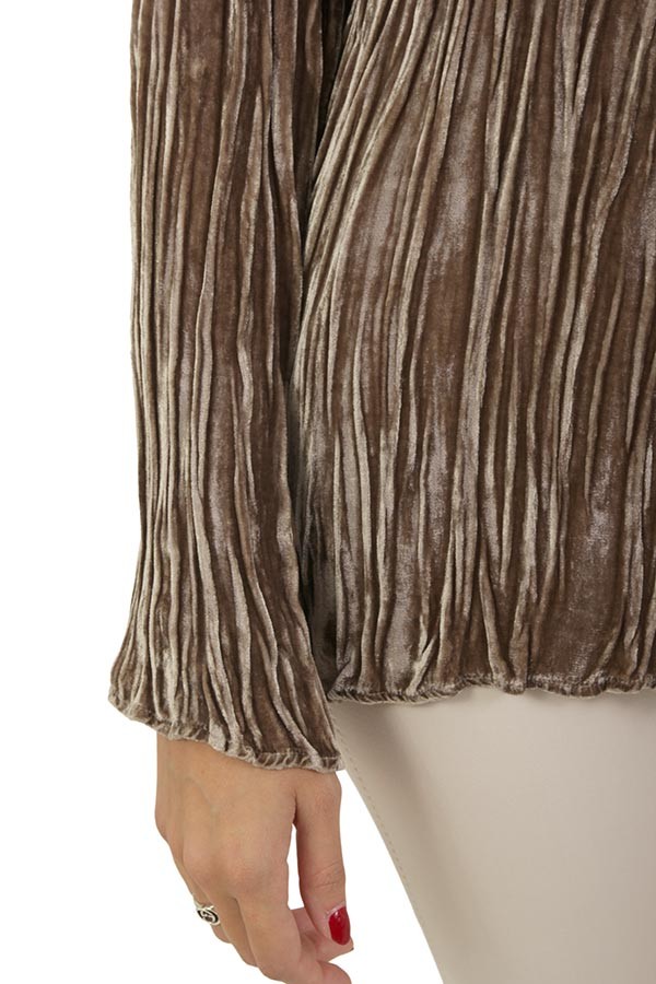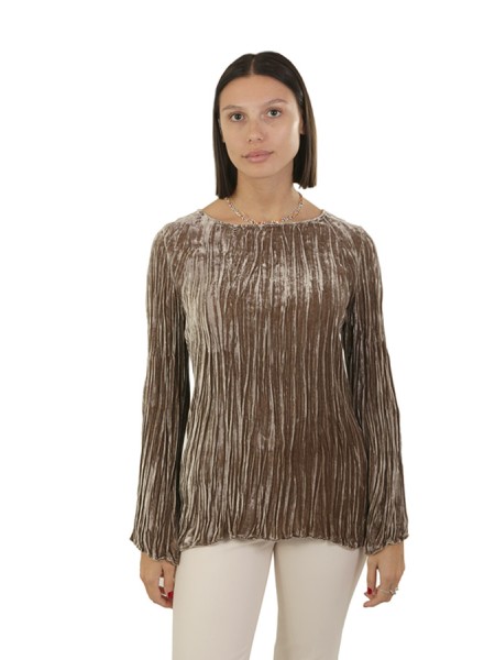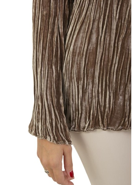 Realizzata in velluto plissettato. Con scollo barca.